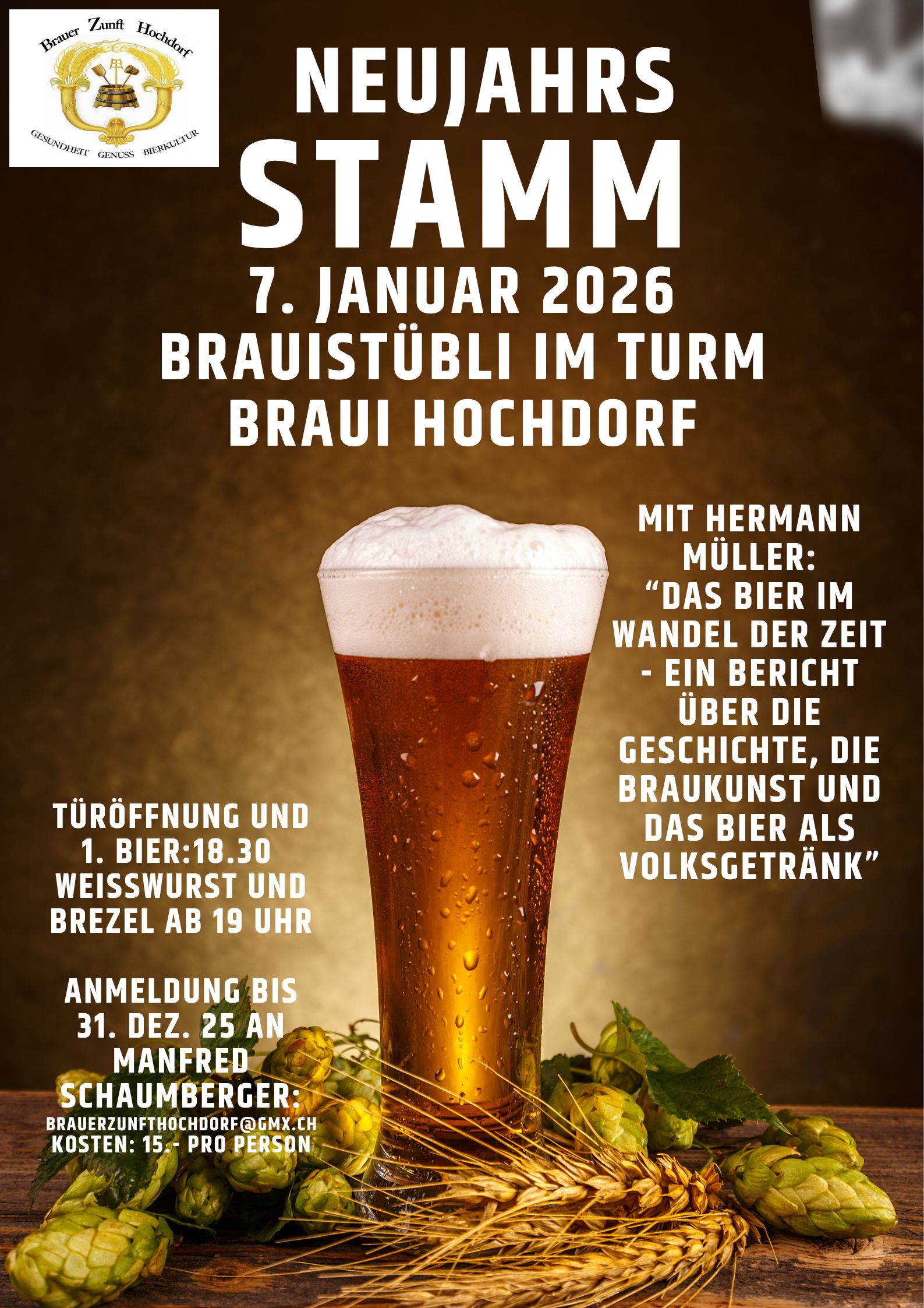 DIE BRAUER ZUNFT HOCHDORF BEZWECKT HAUPTSÄCHLICH DIE FÖRDERUNG UND PFLEGE DER BIERKULTUR, DER BIERTRADITION UND DER BIERKENNTNISSE MIT ÖFFENTLICHEN VORTRÄGEN UND „BIERFREUNDLICHEN“ ANLÄSSEN.